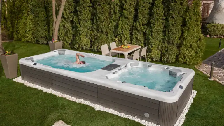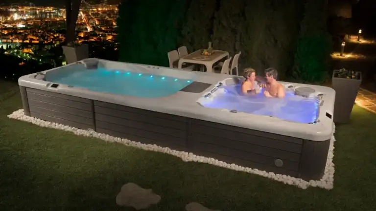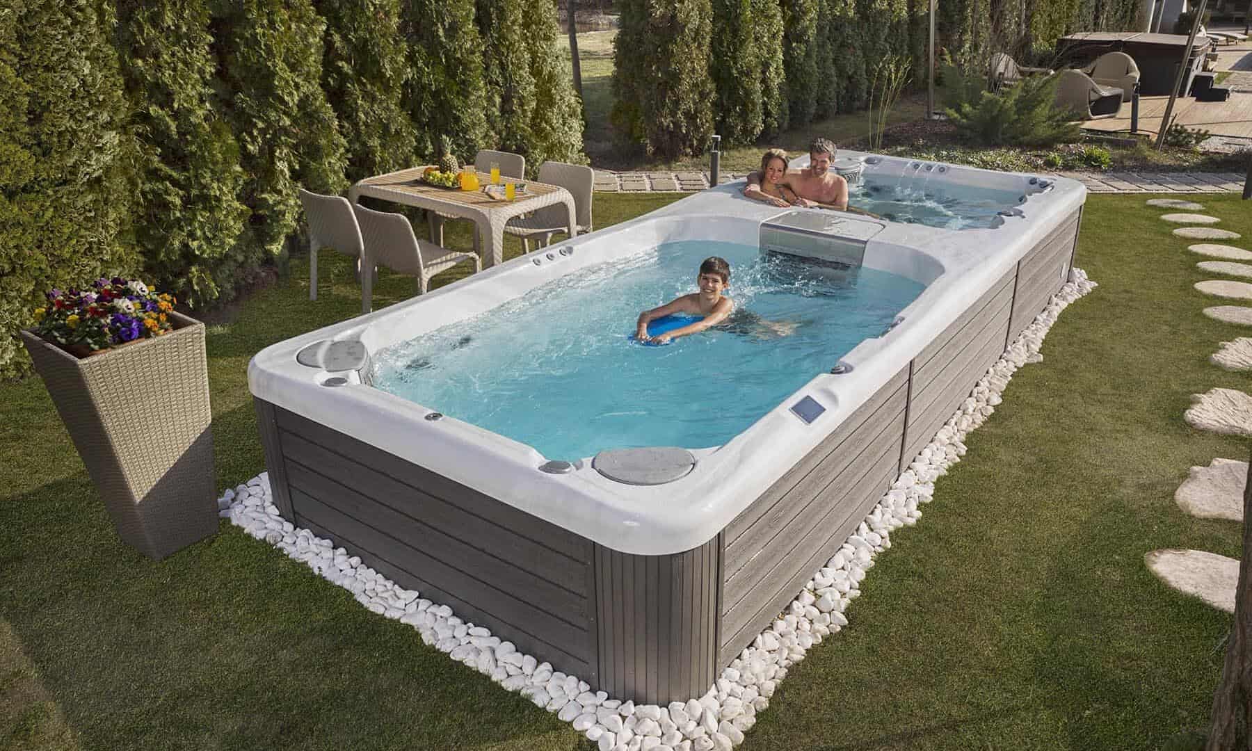We have Semi-Inground swim spas starting at $24,990 of all sizes. From 15 to 19 foot, to dual-zone swim spas with a hot tub and swim spa zone in a single unit. These spas boast powerful swim jets and jetted seats, making them the ultimate year-round tool for exercise, relaxation, and recreation, all in one compact package.